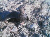 I then went to the speed field. I have talked about it before and I don’t see how jack rabbits could run any faster anywhere than in this field – table-top flat, compacted sand, with nothing to get in the way. Jacks have only one means of escape, run and run faster! There are some weeds growing here but the jacks don’t go in them; not sure why, but they don’t. They prefer to dig their scrapes in the open field and, therefore, they see you coming from a long way off. I went in the unlocked gate and unhooded JH. He spotted a jack 500 plus yards out and was off. He nearly caught it at the fence on the far side of this large field. I usually walk down the side of the field making turns through the weeds because you never know, and then work my way out into the speed zone. Your bird must be in condition for these slips — they are long, 100 plus yards, and fast, with a fence at the end. Sixty yards in front of me a jack exploded up and was in full after-burn, heading like a shot straight for the cyclone fence some 300 yards further ahead. JH was gone off my arm in a blur, flying close to the ground……he was cranking! People that have seen him fly in person or on tape are amazed at his wing turnover; quick, powerful strokes eating up the ground between him and the jack rabbit! At the very last second the jack attempted a sharp turn to the left and was blotted out with the arrival of JH. That was cool. The jack flushed 60 yards in front of us and 110 yards from the spot the jack flushed, JH caught it. JH flew 170 yards and the jack ran 110 yards……speed on speed. As I was leaving the field two old guys in a pickup truck rolled up and said they saw me out in the field and “was that a turkey vulture?†A TURKEY VULTURE? “Noâ€, I said, “it’s a red tail.†Oh, I hunted a little more and JH caught a cat. It didn’t make much noise but did bite him…..I wish he wouldn’t do that!