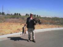 The next field we tried was the tumbleweed field but as I was unloading JH we noticed the goat farmer busily stringing electric fence in MY tumbleweed field!! So we went to the field from hell and walked in a line across the front end of the field. We made a big turn to the left and started heading for the truck. A jack rabbit flushed and immediately went into evasive maneuvers. JH was closing fast and the jack knew it. Running and turning to the left was a big mistake. JH easily over-took the third jack rabbit of the day.